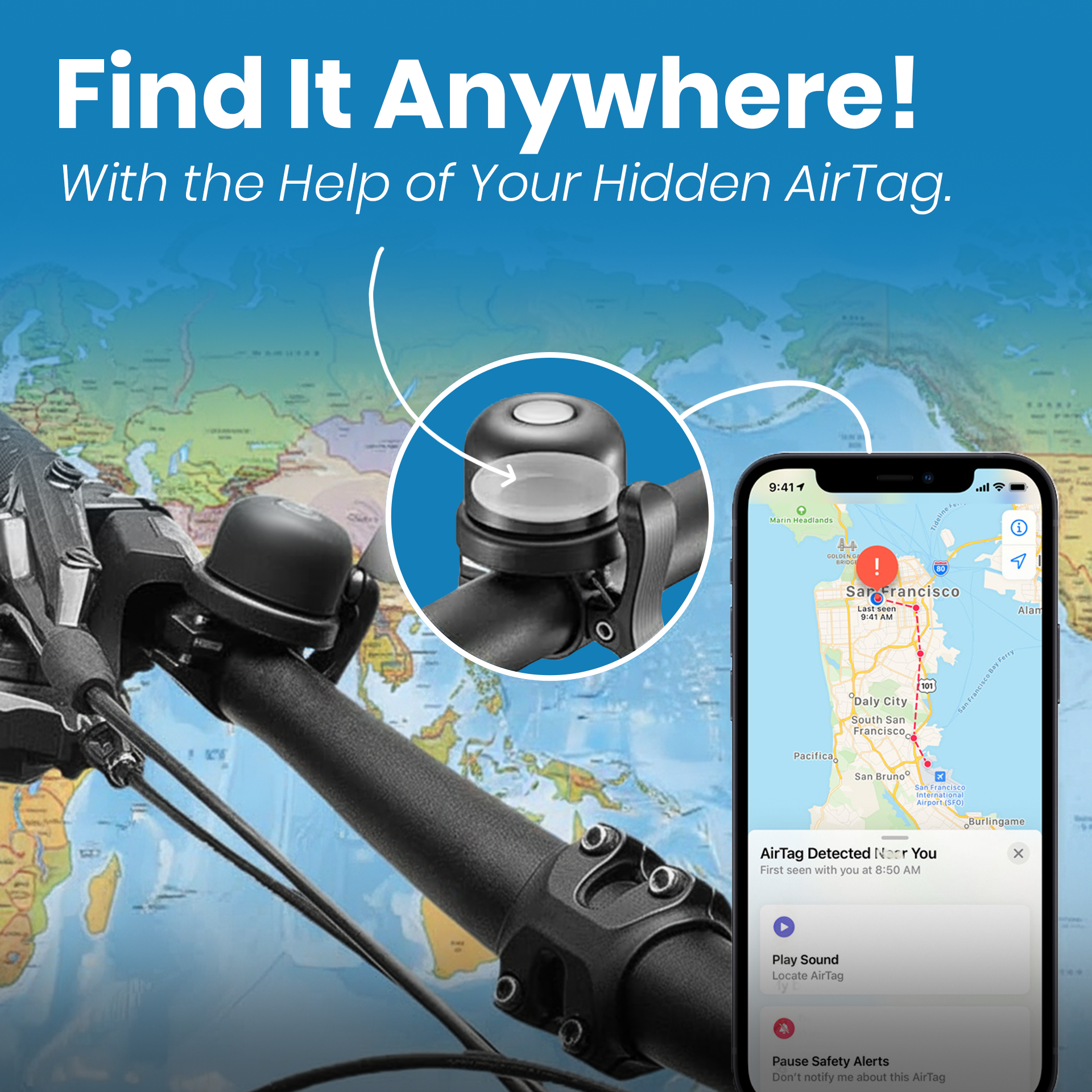 Simply insert your AirTag into the hidden compartment, attach Bellcycle to your handlebar, and start tracking your bike anytime through your mobile phone app.